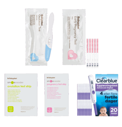 Vi selger både graviditetstester og eggløsningstester av kjente merkevarer til lav pris