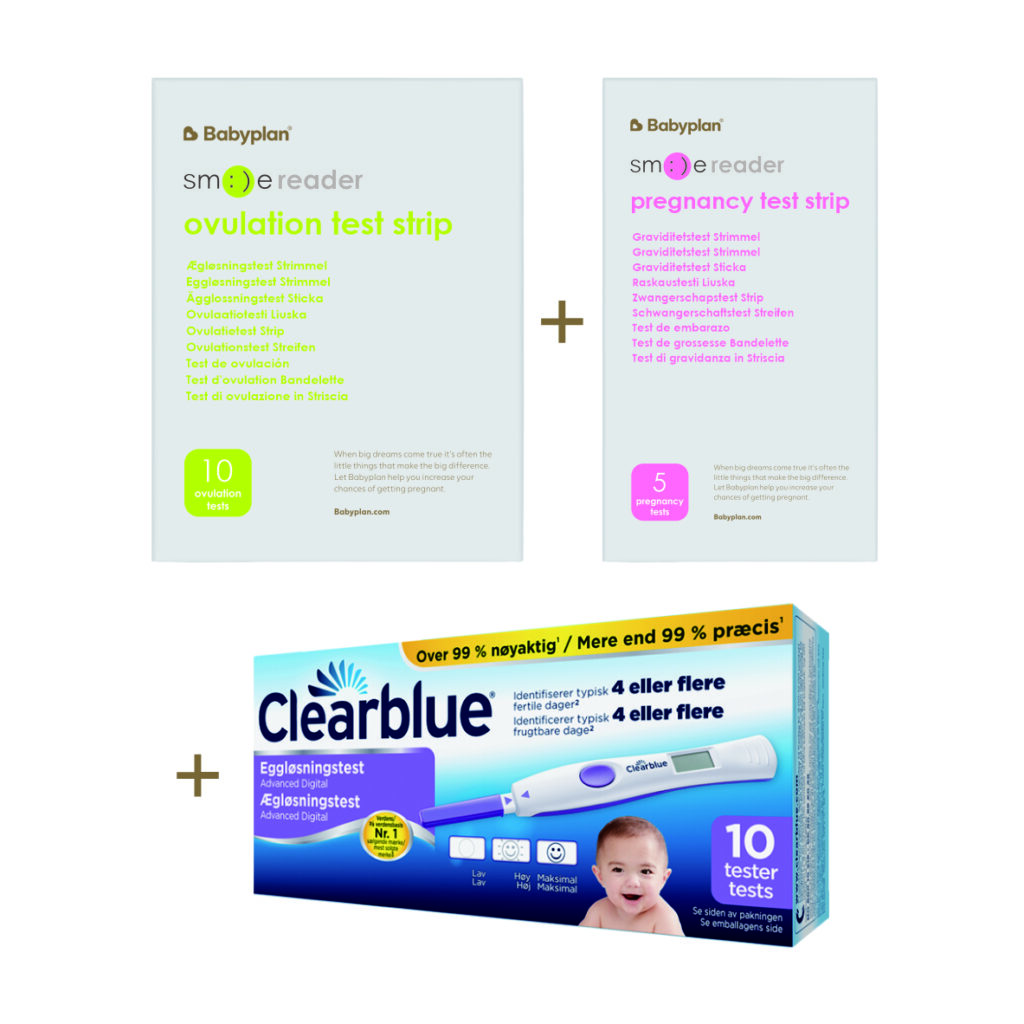 Gjør det enklere å finne de riktige dagene – og finn ut om du er gravid på et tidlig stadium. Med dette samlede testsettet får du både Clearblue Advanced Digital eggløsningstest og SmileReader-tester.