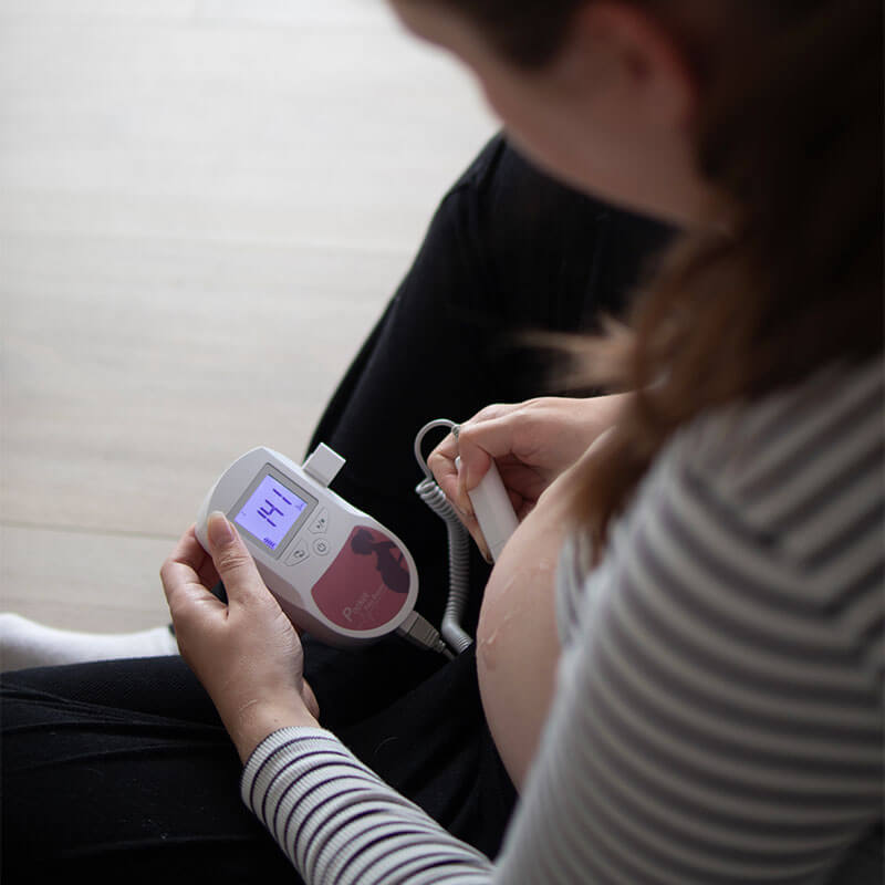 Doppleren har innebygd høyttaler, slik at både partner og søsken kan lytte med når babyens hjerte slår. Du kan også koble til hodetelefoner hvis du ønsker å høre babyens hjerteslag alene.